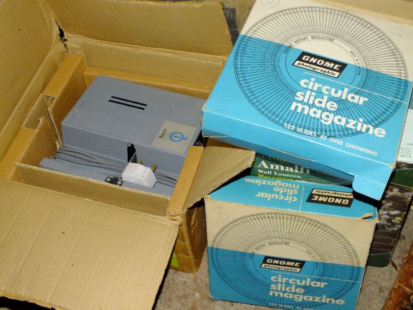 AN AQUA VAC SLIDE PROJECTOR, WALL LANTERN AND STEAMER