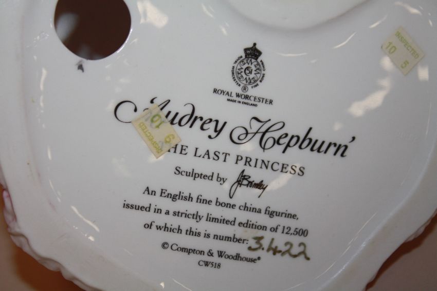 THREE ROYAL WORCESTER LADY FIGURES, TO INCLUDE TEA AT THE RITZ, ALICE AND AUDREY HEPBURN (3)