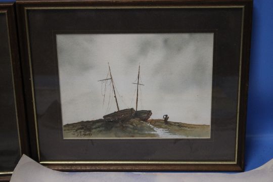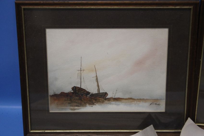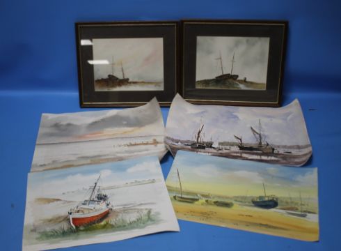 JAN CLUTTORBUCK, WATERCOLOUR OF A HARBOUR SCENE, along with two framed J.S Moody watercolours of boats and loose miscellaneous watercolours.