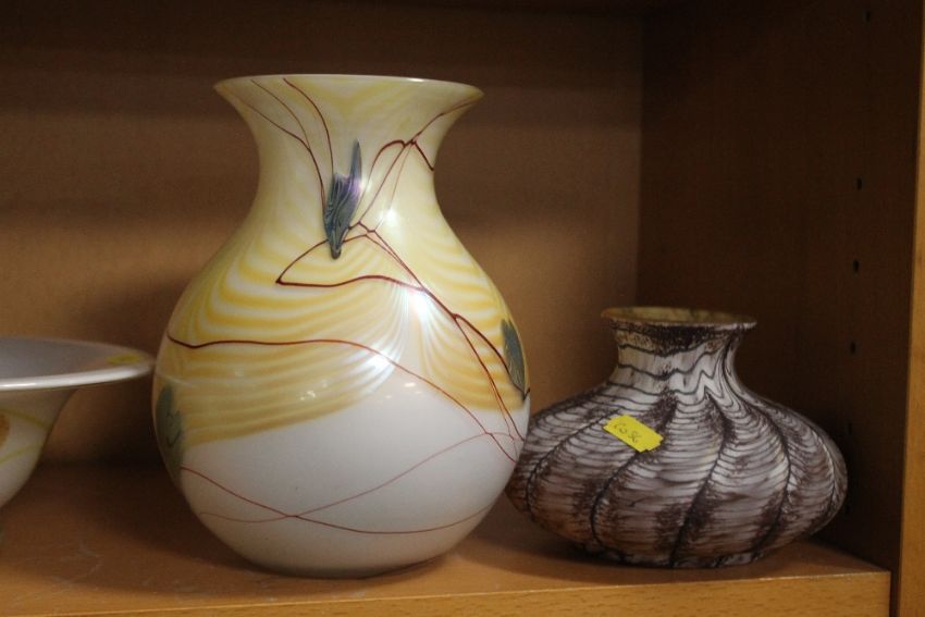 THREE OPALARIUM LIMITED EDITION GLASS VASES TOGETHER WITH OTHER SIMILAR EXAMPLES Condition Report:All of the pieces appear to be in good condition with no chips or cracks that we can find