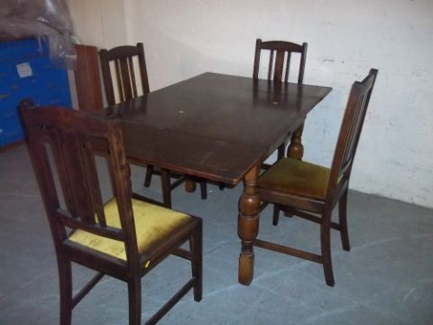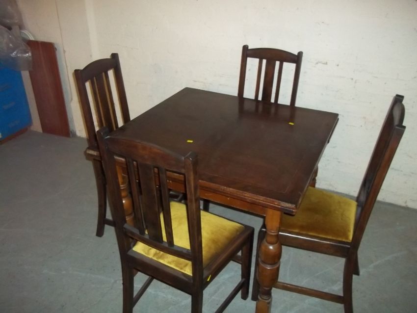 A 1920 OAK DRAW LEAF TABLE AND FOUR CHAIRS