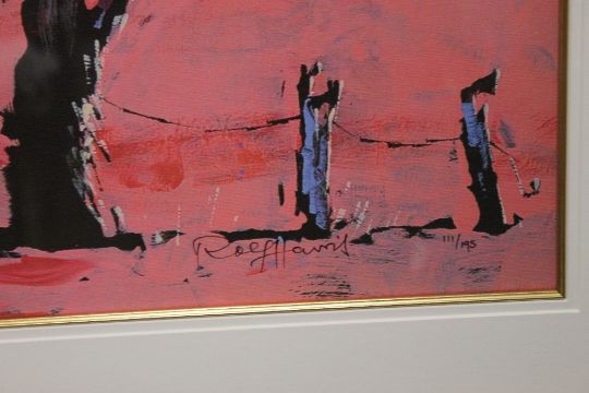 A FRAMED AND GLAZED LIMITED EDITION ROLF HARRIS PRINT, 111/195, 104 X 78 CM, NO CERTIFICATE