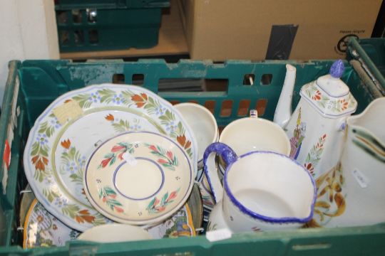 FIVE TRAYS OF GLASSWARE TOGETHER WITH A TRAY OF CERAMICS (TRAYS NOT INCLUDED)