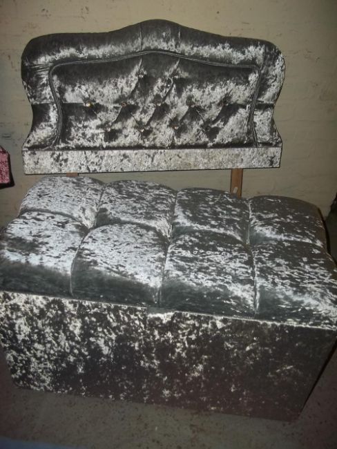 SIX ITEMS INCLUDING MODERN OTTOMANS AND HEADBOARDS