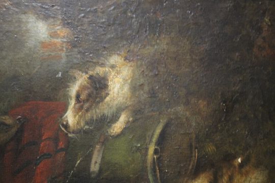 AN FRAMED OIL ON CANVAS OF A JACK RUSSELL, SIGNATURE INDISTINCT, 63 x 53 cm including frame¦Condition Report:Four small flecks of paint loss, not inspected out of frame¦