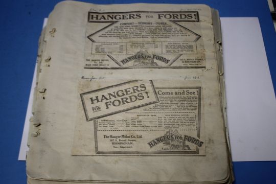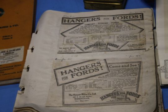 A VINTAGE FENCING FOIL TOGETHER WITH A COLLECTION OF ASSORTED ADVERTISING ITEMS, to include a "Clark & Howard Ltd Small Tools" catalogue, Packman & Co. (1920) and a scrap book of clipped advertisements etc.