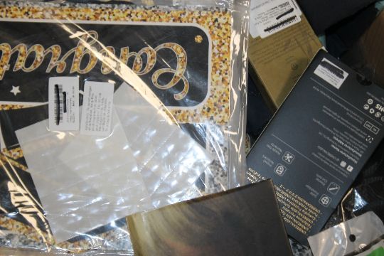 TWO LARGE BOXES OF MAINLY NEW ITEMS TO INCLUDE BOOKS, HIGH SCHOOL GRADUATION BANNERS, PHONE CASES ETC.