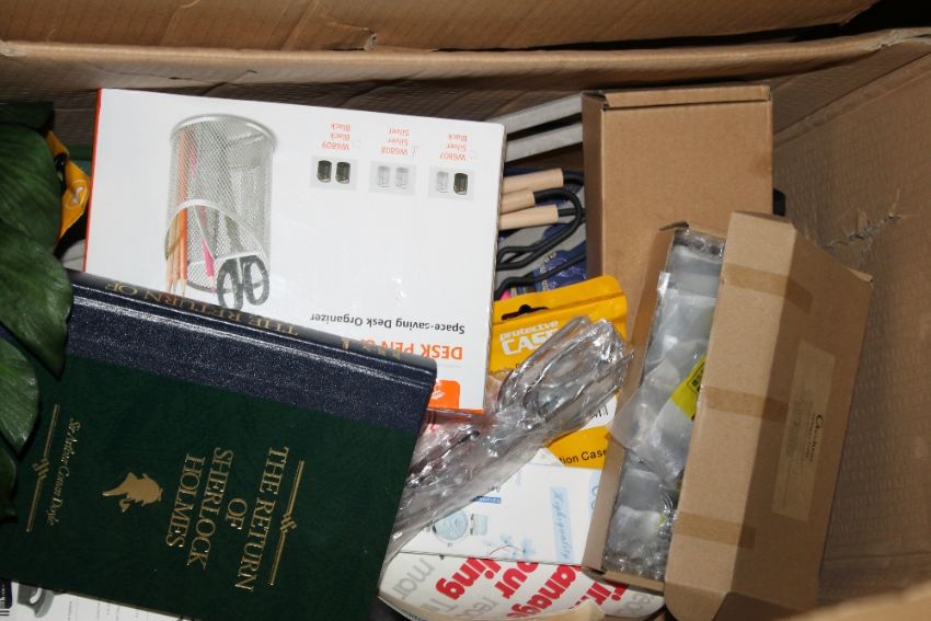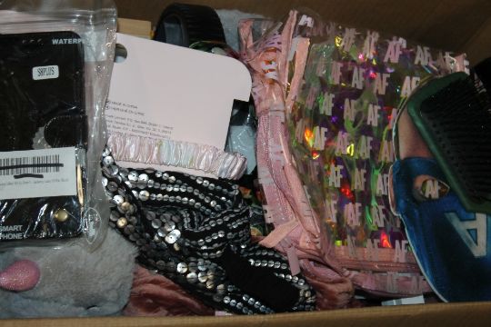 THREE BOXES OF NEW ITEMS TO INCLUDE CAR WINDOW SHADES, PHONE CASES, HEAD BANDS ETC.