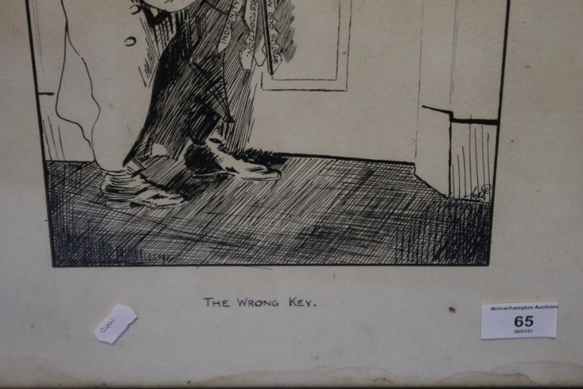 A FRAMED AND GLAZED PEN & INK DRAWING OF KAISER WILHELM TITLED "THE WRONG KEY"