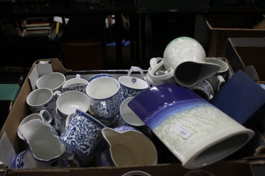 A TRAY OF CERAMICS TO INCLUDE VICTORIA & ALBERT MUSEUM MUGS ETC.