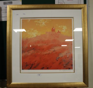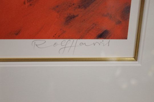 A FRAMED AND GLAZED LIMITED EDITION ROLF HARRIS PRINT, 73/595, 81 X 84 CM INCLUDING FRAME, NO CERTIFICATE