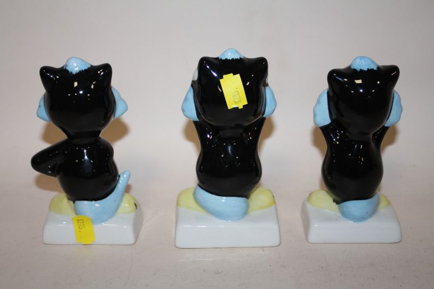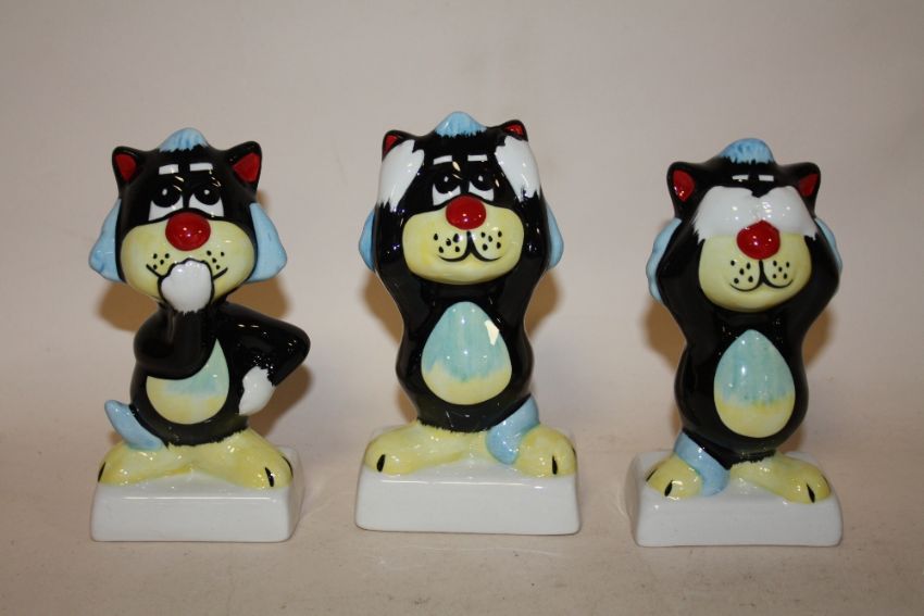 A SET OF THREE LORNA BAILEY CAT FIGURES - SEE NO EVIL, SPEAK NO EVIL AND HEAR NO EVIL