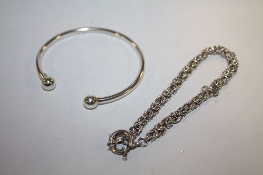 A STERLING SILVER BANGLE AND BRACELET- APPROX WEIGHT 25.4G