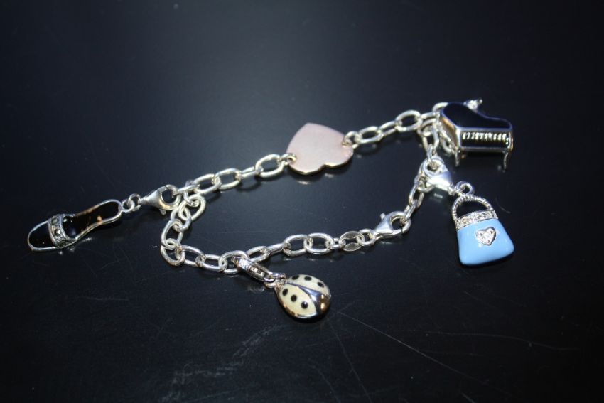 A MODERN STERLING SILVER CHARM BRACELET, TOTAL WEIGHT 10.3 G
