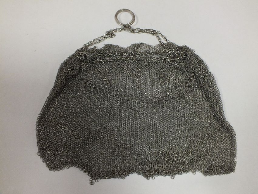 A VINTAGE LADIES WHIOTE METAL MESH PURSE