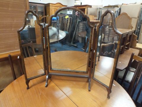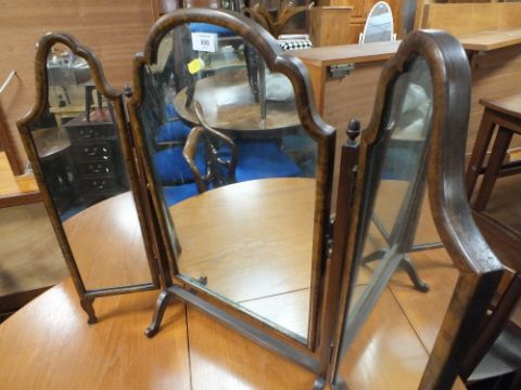 A WALNUT TRIPLE MIRROR H-69 CM