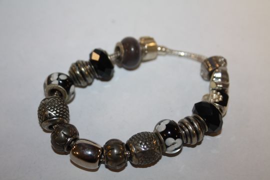 A SILVER CHARM BRACELET STAMPED 925- APPROX WEIGHT 32.7G