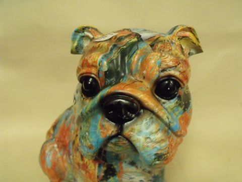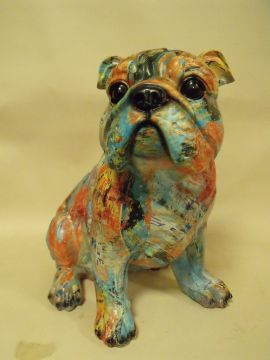 A LARGE RESIN GRAFFITI STYLE FIGURE OF A BULLDOG, H 41 CM