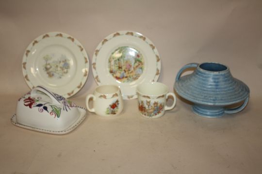 TWO TRAYS OF CERAMICS TO INCLUDE ROYAL DOULTON BUNNYKINS, POOLE POTTERY ETC.