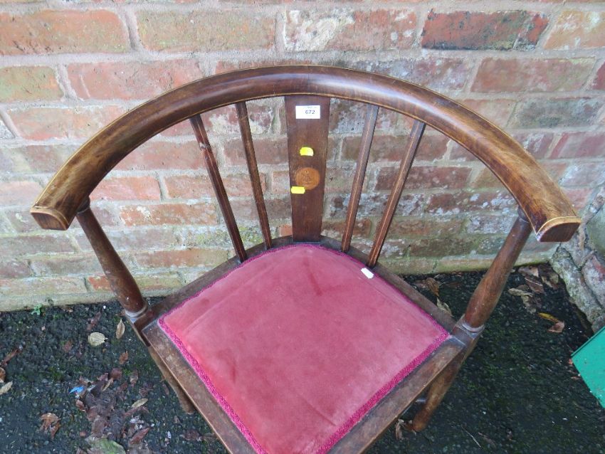 AN EDWARDIAN MAHOGANY INLAID CORNER CHAIR
