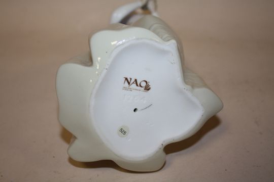 A NAO FIGURE OF A LADY HOLDING A BIRD