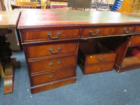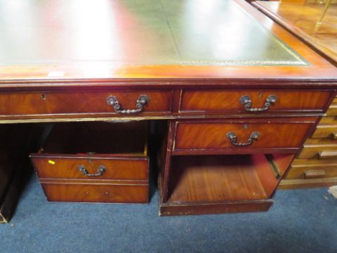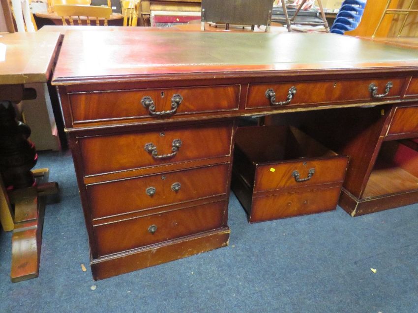 A MODERN MAHOGANY LEATHER TOPPED TWIN PEDESTAL DESK H-77 CM W-183 CM