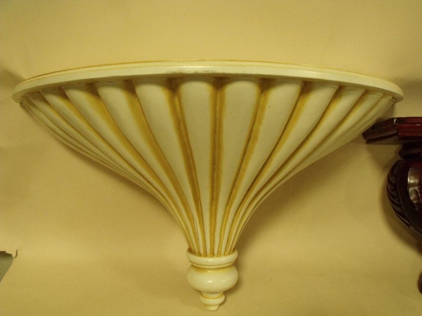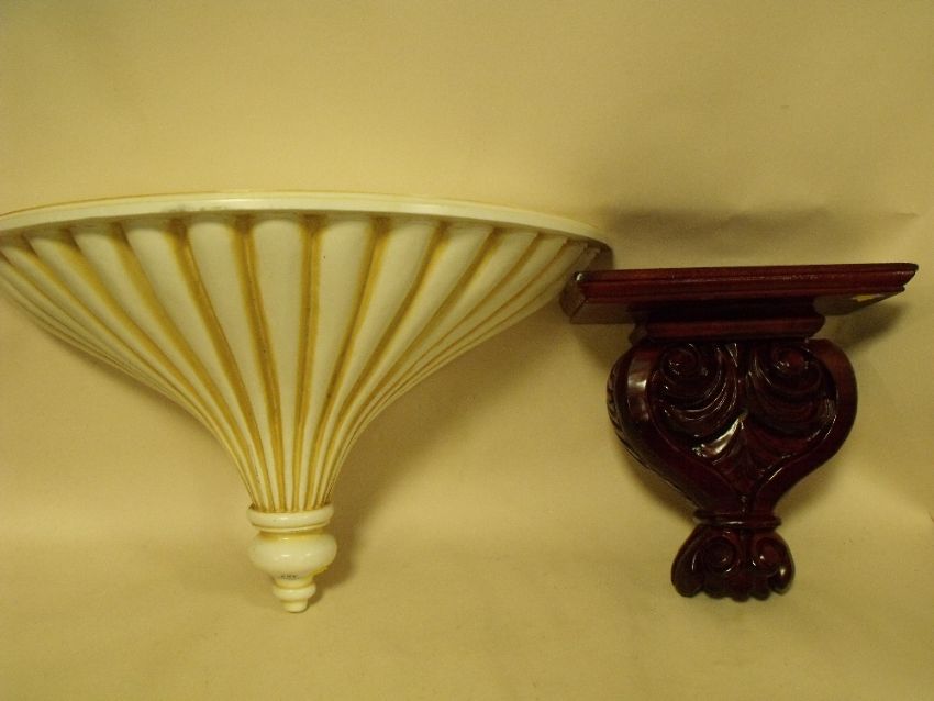 A LARGE RESIN FAN SHAPED CORBEL/ SHELF, WIDTH 59 CM TOGETHER WITH A SMALLER EXAMPLE