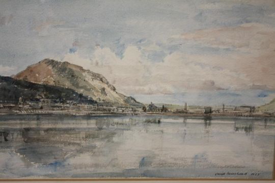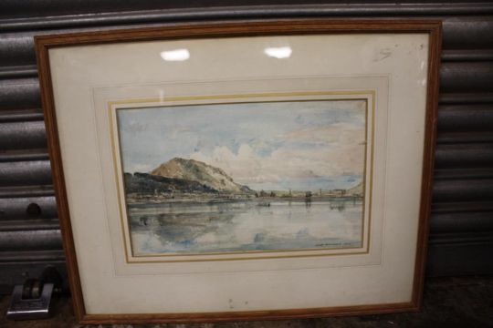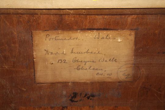 DAVID THOMAS MUIRHEAD (1867-1930). Coastal town` scene 'Portmadoc, N. Wales', see label verso, signed and dated 1925 lower right, watercolour, framed and glazed, 25 x 39 cm