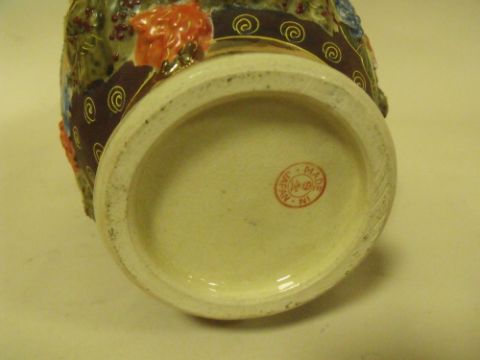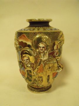 A JAPANESE CERAMIC FIGURAL VASE WITH ORNATE RELIEF