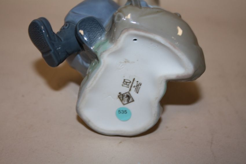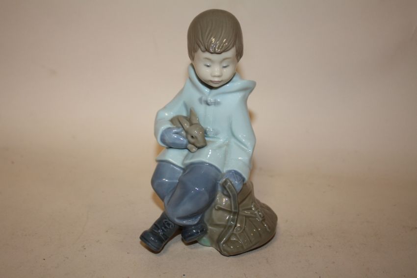 A NAO FIGURE OF A SEATED YOUNG BOY WITH A RABBIT