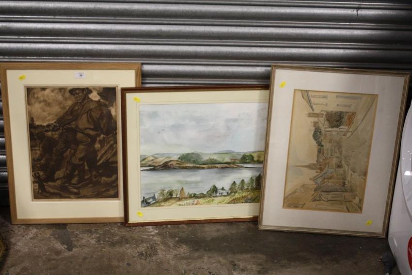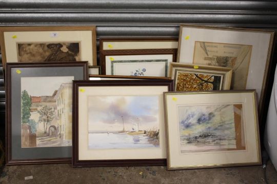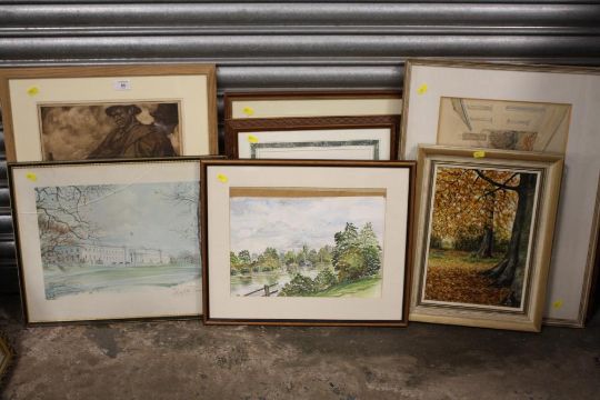 A COLLECTION OF PICTURES AND PRINTS INCLUDING WATERCOLOURS, OIL ON CANVAS ETC.