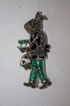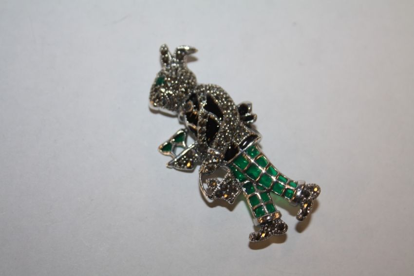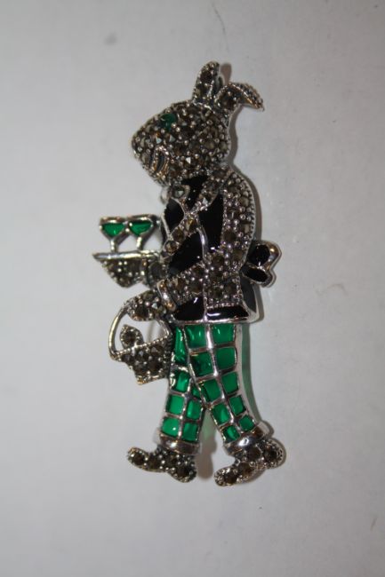 A STERLING SILVER PLIQUE DE JOUR BROOCH IN THE FORM OF A RABBIT CARRYING FOOD AND DRINKS