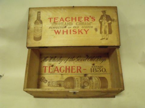A VINTAGE WOODEN TEACHER'S WHISKY BOX