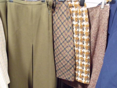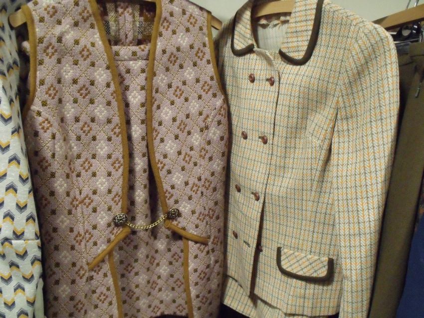 A QUANTITY OF LADIES VINTAGE CLOTHING VARIOUS 50s, 60s & 70s EXAMPLES COMPRISING SKIRTS, 2PC SUITS INC A WELSH WOOL EXAMPLE & VARIOUS DRESSES ETC (APPROX 21)