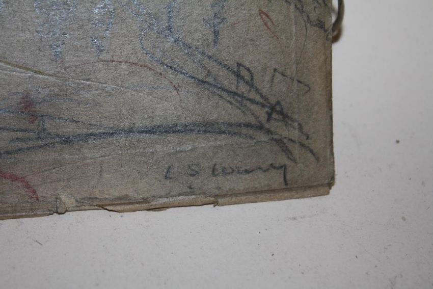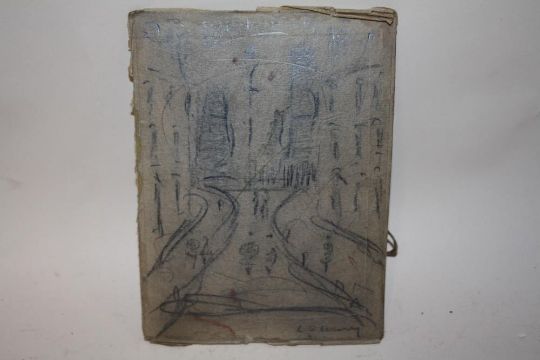 CIRCLE OF LAURENCE STEPHEN LOWRY (1887-1976). Industrial town scene with figures, bears signature lower right, pencil on paper, unframed, 21 x 15 cm