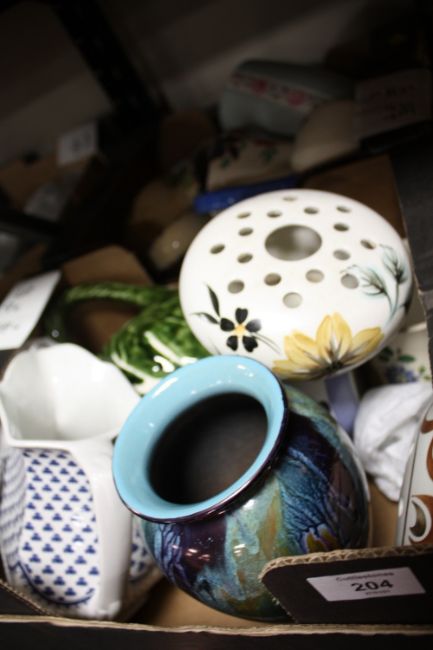 TWO TRAYS OF ASSORTED CERAMICS TO INCLUDE JUGS, WEST GERMAN VASE ETC.