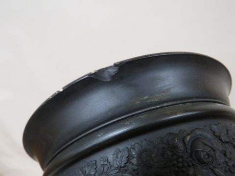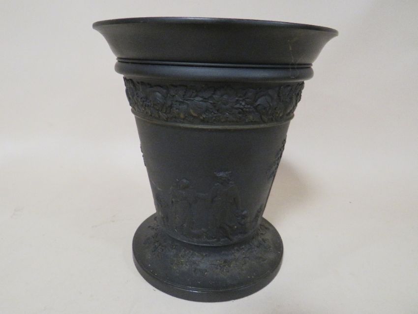 A SMALL TRAY OF WEDGWOOD JASPERWARE TO INCLUDE A BLACK BASALT VASE S/D