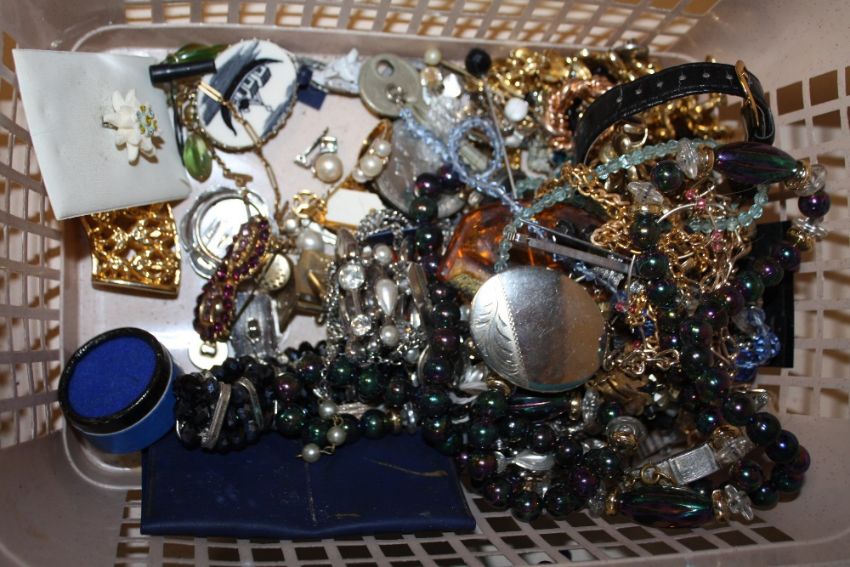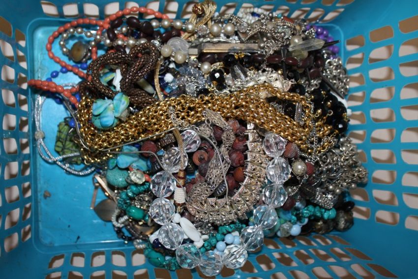 TWO BASKETS OF COSTUME JEWELLERY TO CORAL AND TURQUOISE NECKLACES