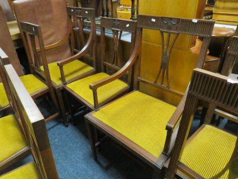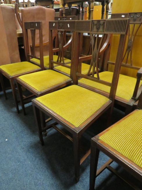 A SET OF EIGHT MAHOGANY SHERATON STYLE DINING CHAIRS