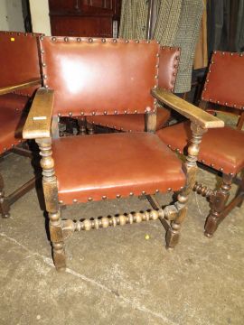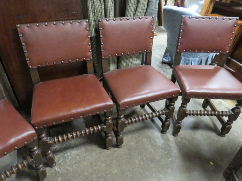 A SET OF SIX OAK STUDDED DINING CHAIRS (4+2)