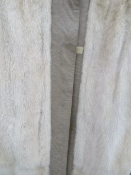 A VINTAGE CREAM / PEARL MINK FUR AND LEATHER COAT, fully lined, velcro fasteners, approx size 36"