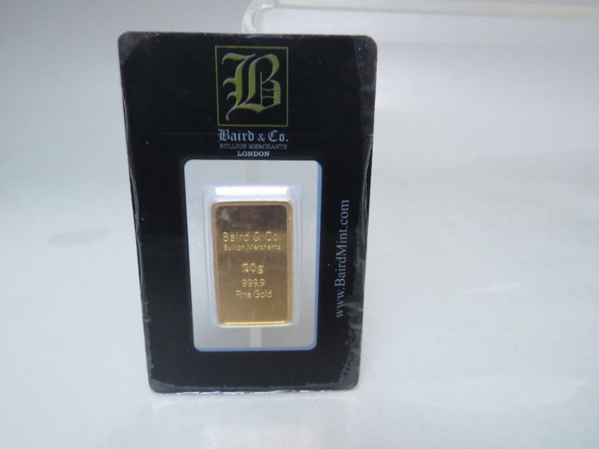 BAIRD & Co BULLION MERCHANTS LONDON 20g 999.9 FINE GOLD BAR