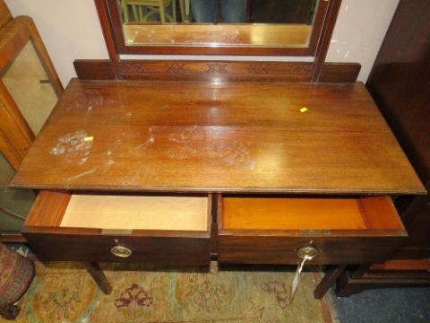 AN EARLY 20TH MAHOGANY TRIPLE WARDROBE WITH A DRESSING TABLE (2)
