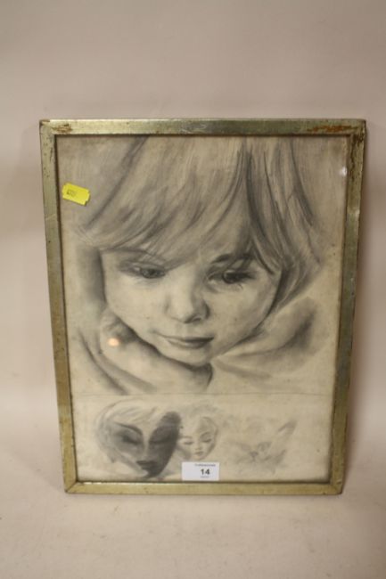 A GILT FRAMED AND GLAZED UNSIGNED PENCIL PORTRAIT STUDY, SIZE 36 CM X 27 CM