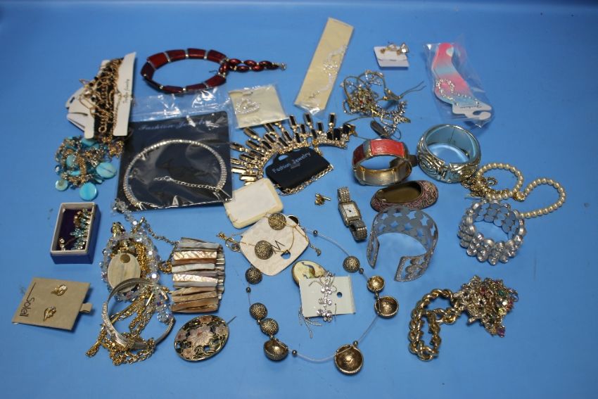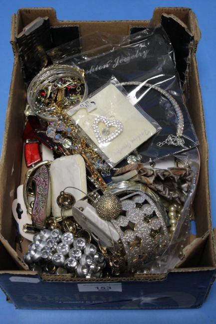 A BOX OF VINTAGE COSTUME JEWELLERY