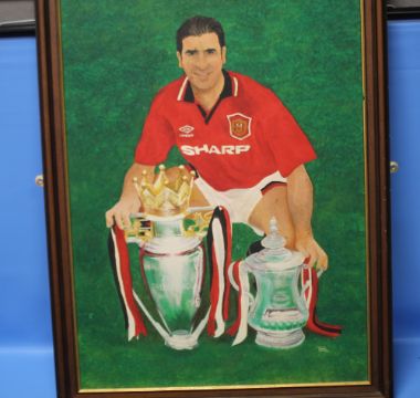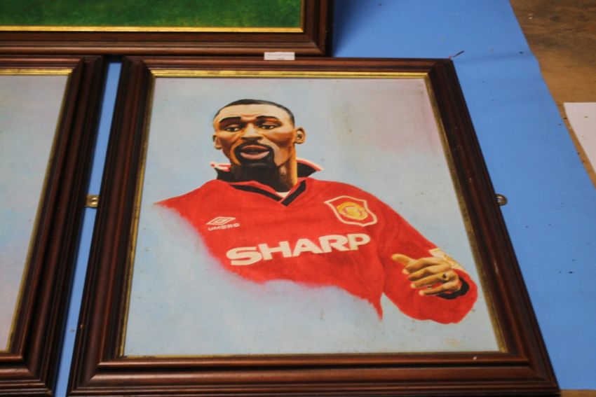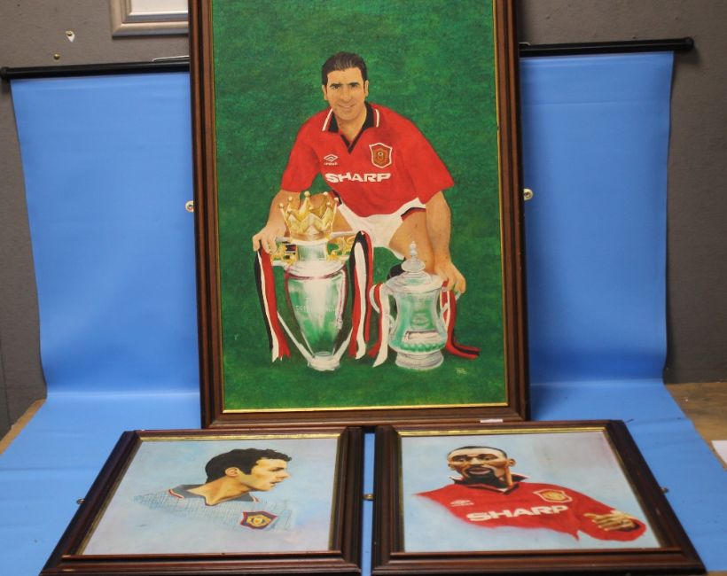 THREE ORIGINAL OIL PORTRAITS OF MANCHESTER UNITED PLAYERS SIGNED 'PAC'