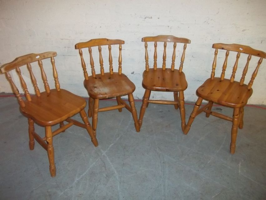 A ROUND PINE DINING SET WITH FOUR CHAIRS