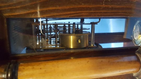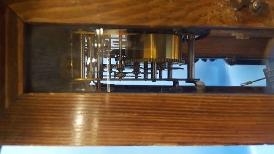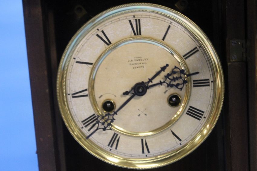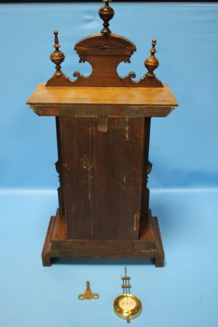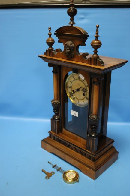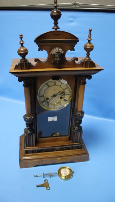 AN ANTIQUE WALNUT CASED MANTEL CLOCK