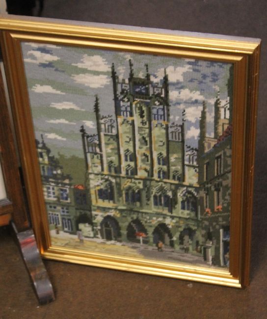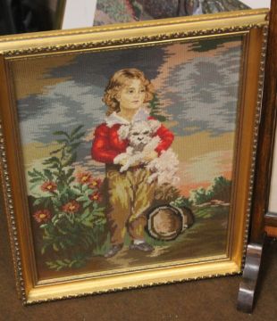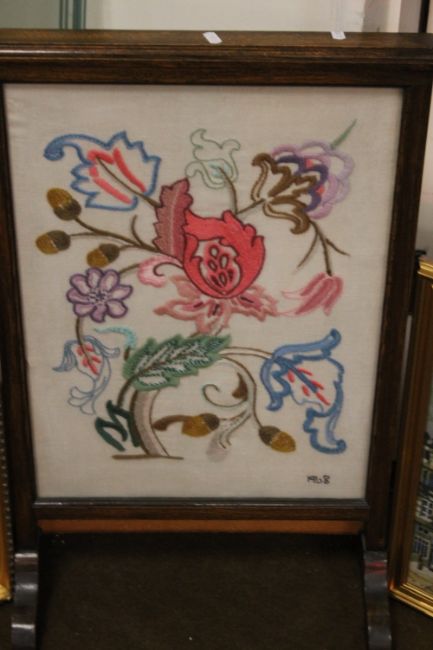 A FRAMED AND GLAZED TAPESTRY FIRE SCREEN TOGETHER WITH TWO OTHER TAPESTRIES (3)