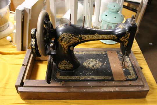 A VINTAGE SINGER SEWING MACHINE IN WOODEN CASE (CASE A/F)